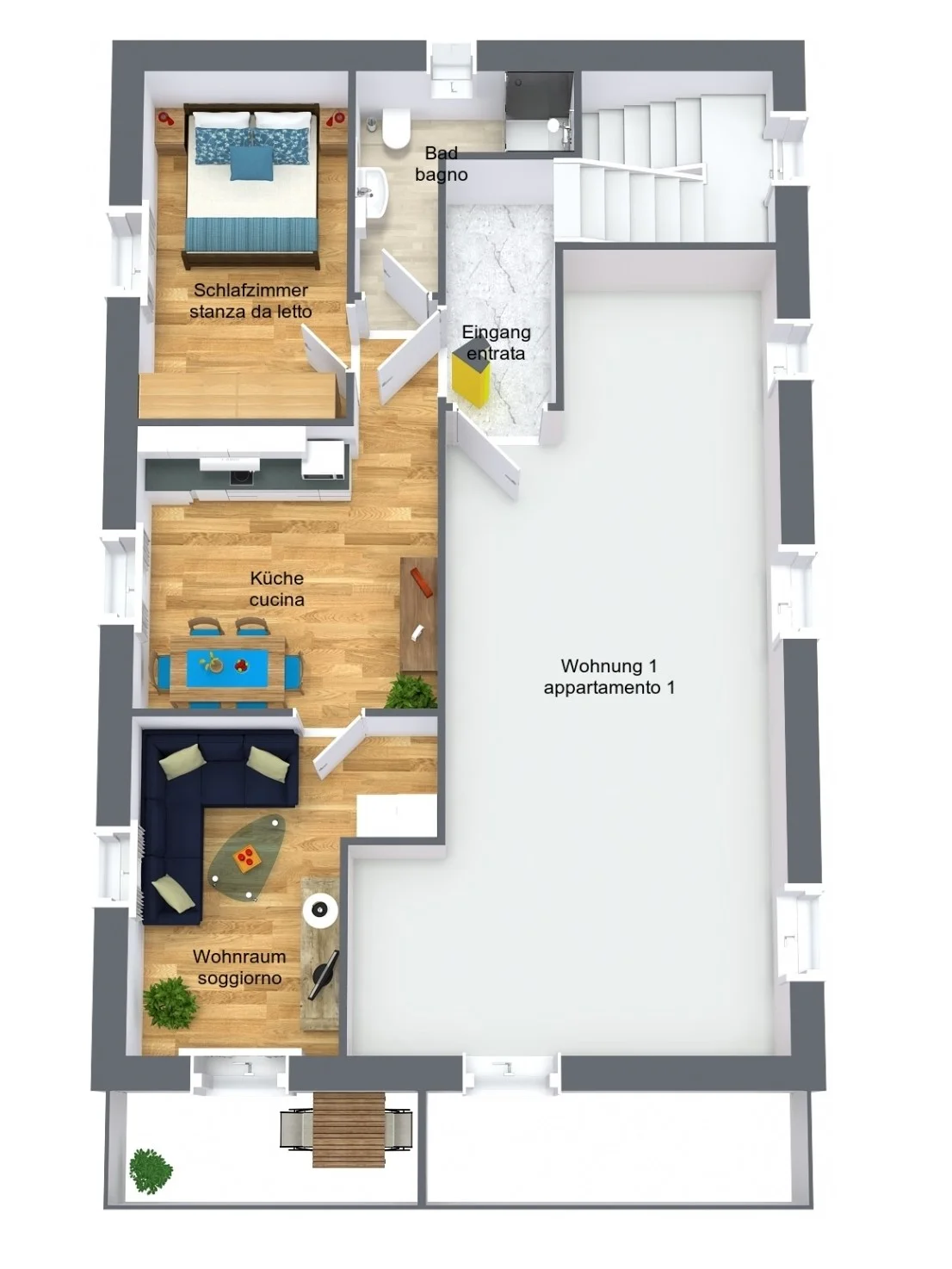 Dank der Ausrichtung nach Süd-Osten genießt ihr bereits am Morgen die ersten warmen Sonnenstrahlen – der perfekte Start in einen erholsamen Urlaubstag auf dem Land.